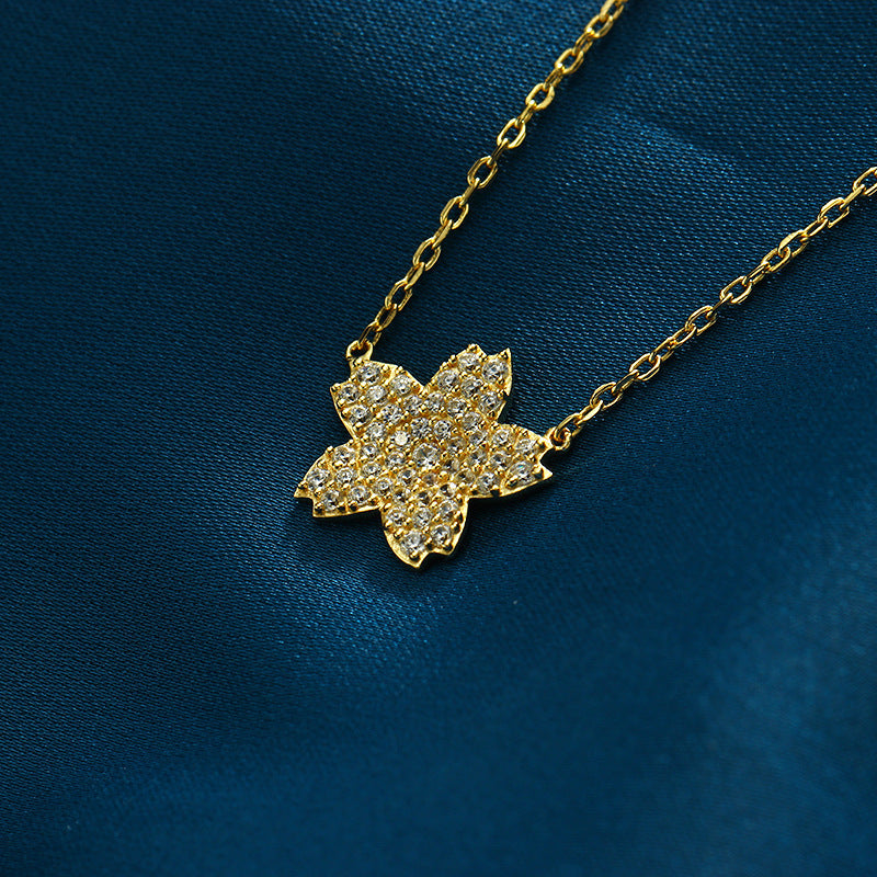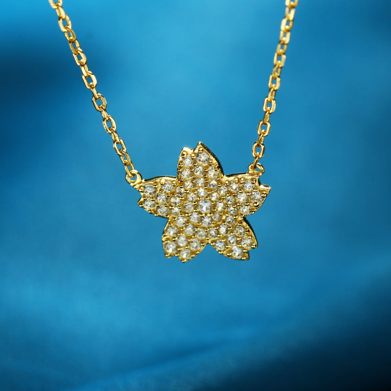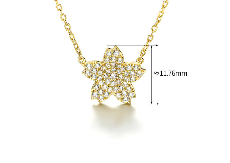 Women's Light Jewelry Sterling Silver Full Diamond Flower Necklace